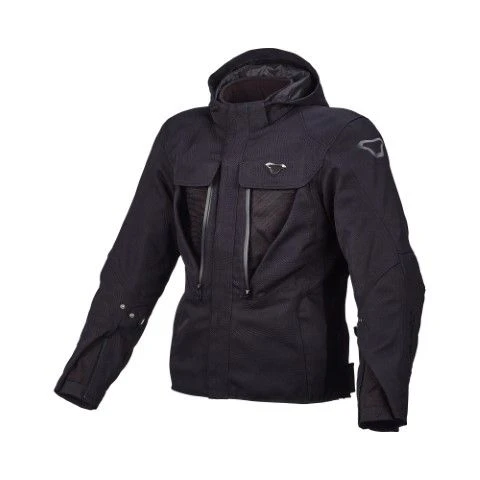 De Macna Quga is een stoere, textiele motorjas die dankzij het Raintex direct laminaat membraan volledig wind- en waterdicht is. Het Raintex direct laminaat membraan zorgt ervoor dat het water niet gevangen komt te zitten tussen de buitenschaal en het membraan maar dat het water direct van de jas afloopt. Zo behoudt je ten alle tijden een droge, warme jas.